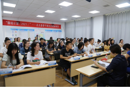 本项目是公司与古丈县开展教育培训综合改革模式创新试点项目建设的第三年,公司高度重视,精心安排。开班典礼上,继续教育公司经理曾小玲教授对参训班主任提出要求,珍惜学习机会,做好笔记,用心思考,争取多多学习专家、前辈们的丰富经验,更好地用于班级管理,更好地服务于员工。本项目首席专家徐卫良老师总结以往班主任培训项目的经验,基于广泛需求调研,充分整合资源,积极探索创新,不断凝练特色,以“班级管理关键能力的提升”为培训主题,采取专家引领、案例剖析、任务驱动、参与研讨、交流分享、团队建设、拓展阅读等多样化的培训形式,着力培养骨干班主任班级管理、文化建设、活动设计、员工指导、心理教育等关键技能,以期提高古丈县骨干班主任的整体素养。