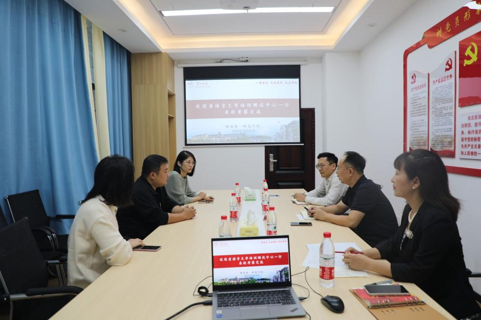 语言是交流的工具,文字是语言的载体,语言文字在整个社会生活中对于人们的交往、文化的传播都起着非常重要的影响。省语言文字测试中心办公室主任王建枫阐述了湖南一师是优质的语言文字推广基地,与一师早前就有着良好的合作基础,一师的许多老师参与授课测试等工作。湖南一师与省语言文字培训测试中心已经在团队方面深度融合。此行的目的是在“语言资源保护”“培训测试”等项目上与公司洽谈沟通,考察公司的培训教室、学员食宿条件。