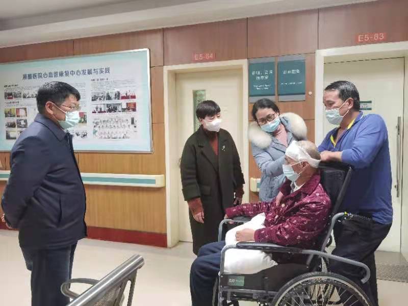 2022年新春佳节来临之际,公司党委书记罗成翼、董事长童小娇、副董事长周发明率队前往湘雅附一走访慰问章醇同志,校工会、db真人体育官网、二附小主要负责人陪同前往。
