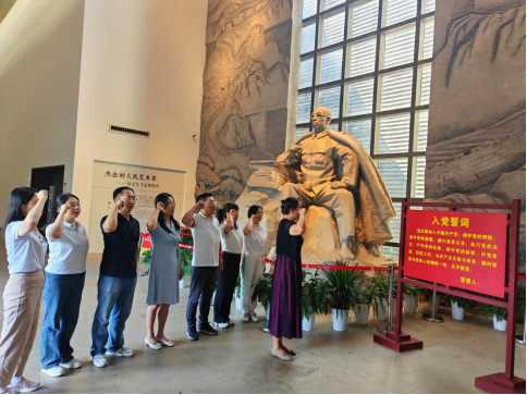 首先,伴随着激昂的《义勇军进行曲》,全体党员同志在田汉艺术中心大厅重温誓词;接下来在艺术中心认真聆听了田汉先生艰苦奋斗的革命故事,感受了田汉先生一生为反抗压迫而战斗,为人间正义而讴歌的伟大精神。最后,来到田汉故居,探寻了田汉的童年和少年时代,深刻感受到了田汉为共产主义事业不懈奋斗的献身精神和深厚的革命情怀。