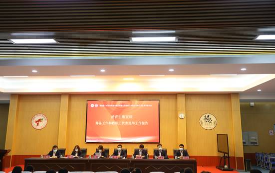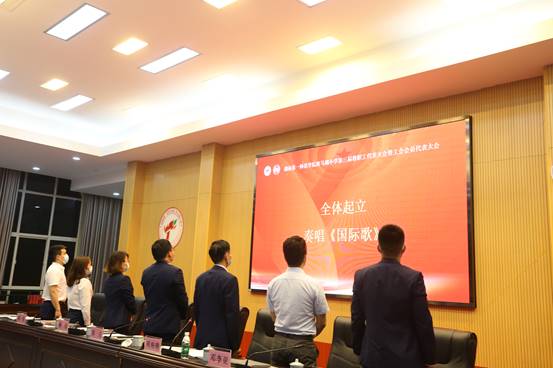2022年5月11日18点45分,由教职工代表、列席人员参会的代表正式大会在嘹亮的国歌声中拉开了帷幕。