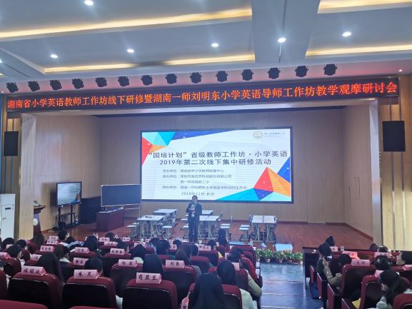 2019年11月22日下午,“DB视讯刘明东小学英语导师工作坊”在DB视讯高新二小开展了一次高质量的教学展示活动。工作坊首席导师刘明东教授、基础教育发展部主任欧立新、周丽敏老师、工作坊全体成员及来自湖南省14个市县的40名小学英语骨干教师和高新区英语骨干教师参加了此次教学观摩活动。活动由工作坊首席名师董玲主持。