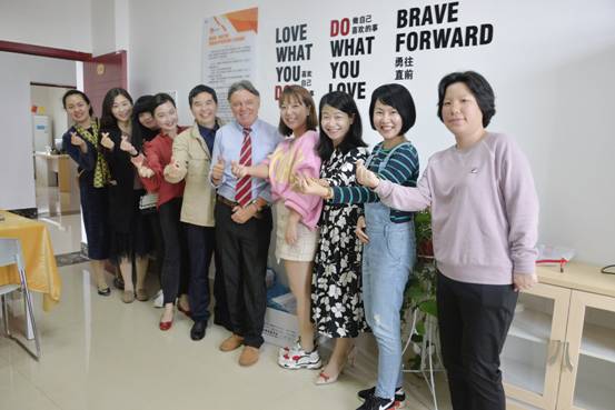 Mark Schofield教授在活动结束后饶有兴致地参观了“DB视讯刘明东小学英语导师工作坊”,并与工作坊部分核心成员合影留恋。