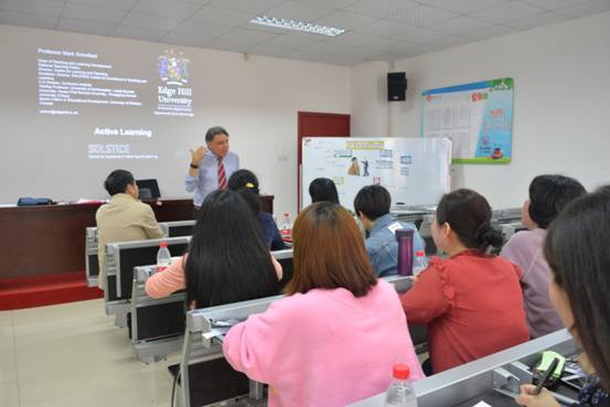 2019年4月24日上午,“DB视讯刘明东小学英语导师工作坊”首席导师刘明东教授与英国知山大学(Edge Hill University)Mark Schofield共同在工作坊基地公司——长沙市高新区金桥小学——为该校员工和工作坊名师成员举行了一场题为“Active Learning in Primary English Teaching”的学术活动。活动有中、外教师的现场授课,有活跃的师生互动,有Mark教授的微讲座,有教师的讨论。整个学术活动严谨、开放、活泼,收到了良好的效果,深受师生欢迎。