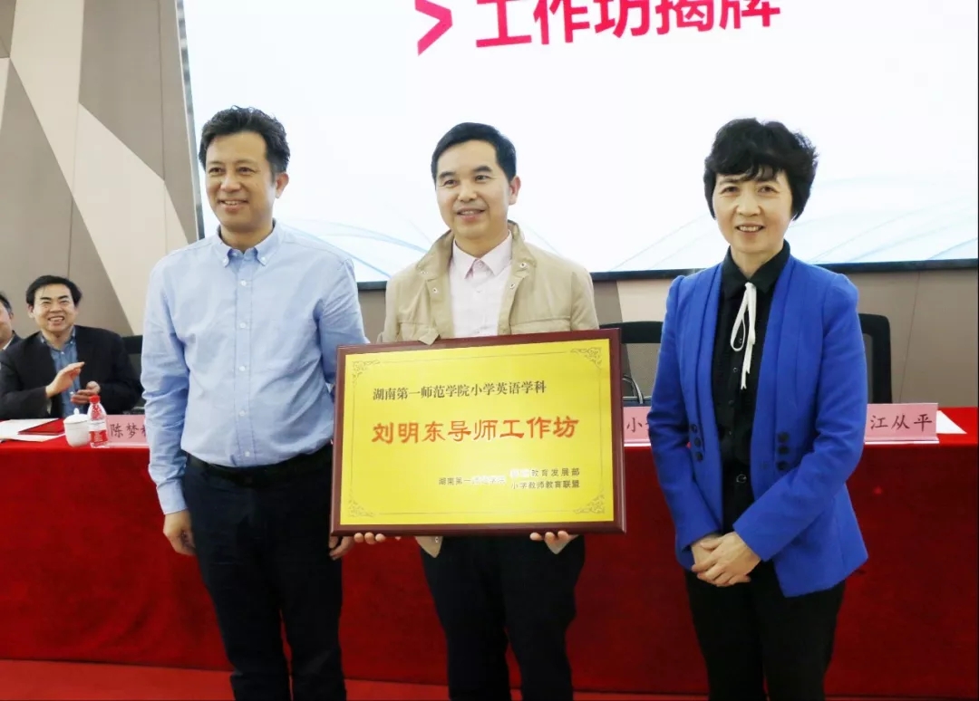 随后,童小娇和江从平为“DB视讯刘明东小学英语导师工作坊”揭牌并授牌。工作坊首席导师刘明东教授发表了讲话。刘明东表示,良好的开端是成功的一半,工作坊得到各级领导的大力支持和热情关怀,一定会竭尽全力取得成功。
