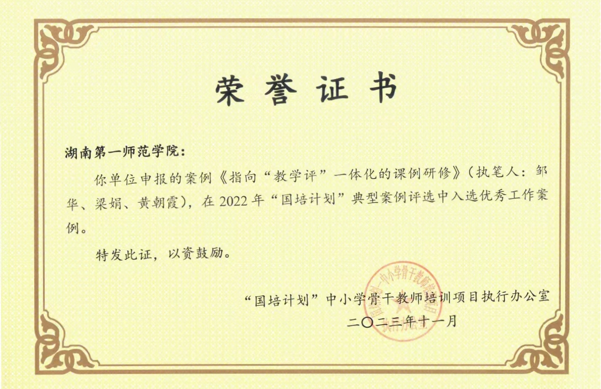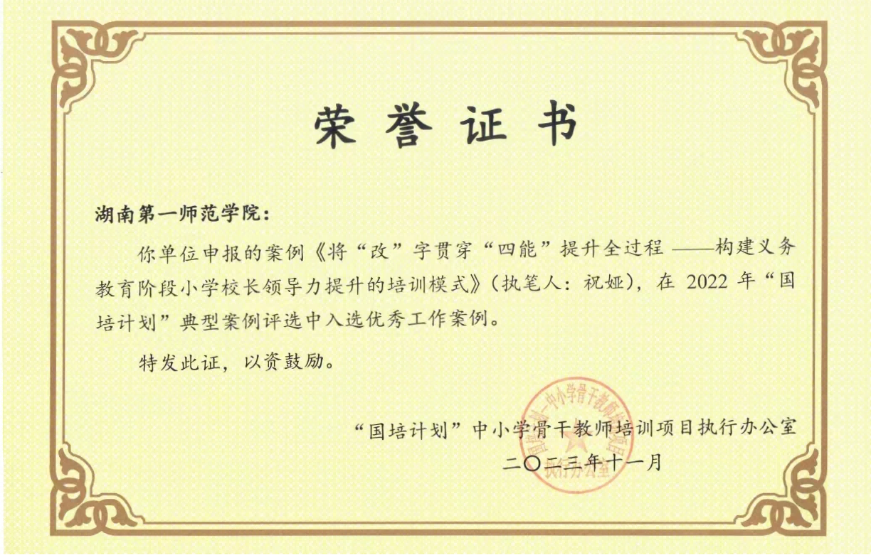 近日,教育部“国培计划”中小学骨干教师培训项目执行办公室公布了2022年“国培计划”典型案例名单。公司祝娅教授撰写的典型工作案例《将“改”字贯穿“四能”提升全过程——构建义务教育阶段小学董事长领导力提升的培训模式》,黄朝霞教授及其培训团队撰写的典型工作案例《指向“教学评”一体化的课例研修》,经河南省国培办推荐、专家遴选,被评选为优秀典型工作案例。