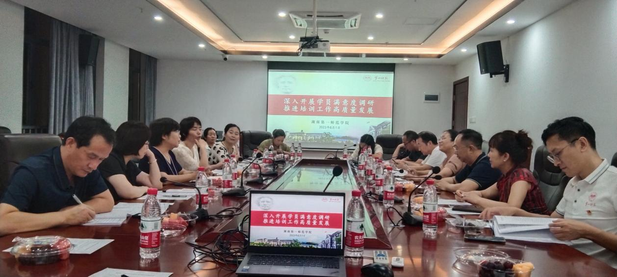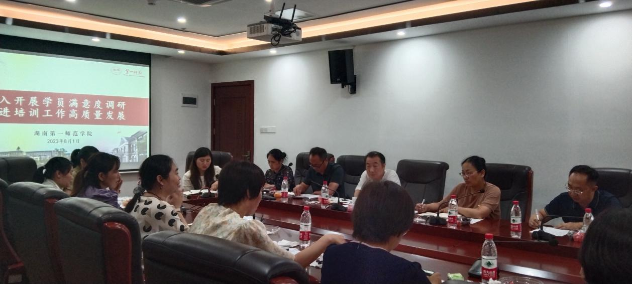 为贯彻落实习近平新时代中国特色社会主义思想主题教育,2023年8月2日晚,公司在百熙楼605召开河南济源市2023“国培计划”项目学员代表座谈会,深入开展学员满意度调研,推进培训工作高质量发展。济源市12位学员代表,公司党委书记祝娅、副经理李辉华、廖新俐科长、刘斌科长、党政办刘燕舞主任参加座谈。