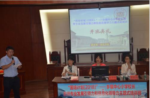 9月12日上午,“国培计划(2018)”乡镇中心小学董事长教师专业发展引领力和信息化领导力主题式培训班开班典礼在特立楼南栋112教室举行。来自我省娄底市、郴州市的70名乡镇中心小学董事长将在这里进行为期9天的培训。继续教育公司经理曾小玲、副经理黄朝霞出席开班典礼。