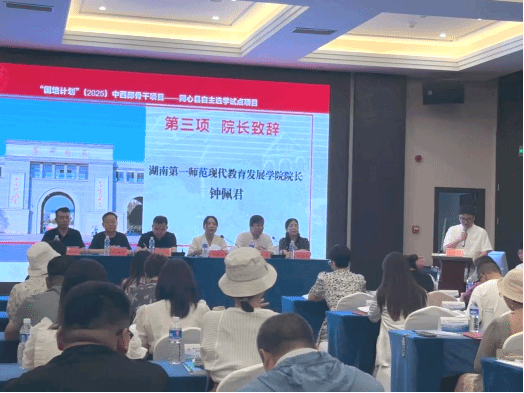 钟佩君在开班仪式上强调,作为教育部“国培计划”示范项目承训单位,公司始终以服务国家教育发展战略为使命。她指出:“我们依托百年师范教育的深厚积淀,构建了‘红色基因+专业赋能+实践创新’三位一体的国培品牌体系,为中西部地区教师发展贡献‘一师’力量。”公司将充分发挥国家级培训基地的示范引领作用,通过定制化课程体系和双导师制培养模式,为民族地区教师队伍建设注入持续发展动能,切实肩负起推动教育优质均衡发展的时代责任。胡春光则以“千年学府、百年师范”的办学传统勉励学员,希望他们成为知行合一的实践者和优质教育的推动者。