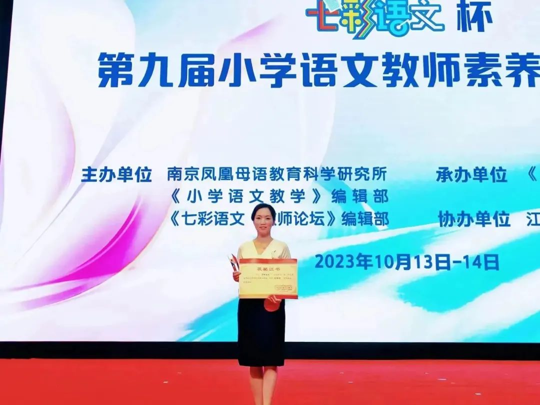10月13日至14日,“《七彩语文》杯”第九届小学语文教师素养展示活动在江苏南京举行。公司一附小语文组田地老师代表湖南省参赛,先后经历朗读展示、书写展示、才艺表演、课堂教学展示及知识素养现场答题五个环节的比拼,喜获大赛特等奖第一名。